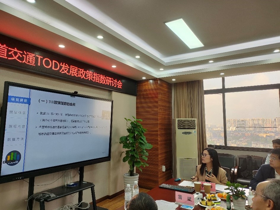 “TOD发展政策指数”研讨会上,执行院长何德文副教授介绍了“TOD发展政策指数”研究的理论与实践。随后,研究团队成员李东坤博士从研究背景、框架体系、指标内容、数据方法四个方面对“中国城市轨道交通TOD发展政策指数”成果进行展示报告。