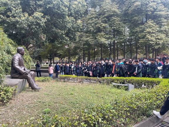 聆听着茅以升先生、林同炎先生、严恺先生等杰出校友的生平事迹,同学们心绪激扬,心生向往,深受触动。矗立在前辈雕塑前,致以穿越时空的凝视,是晚辈对前辈的敬佩和感怀,更有前辈对后辈的期许和寄托。