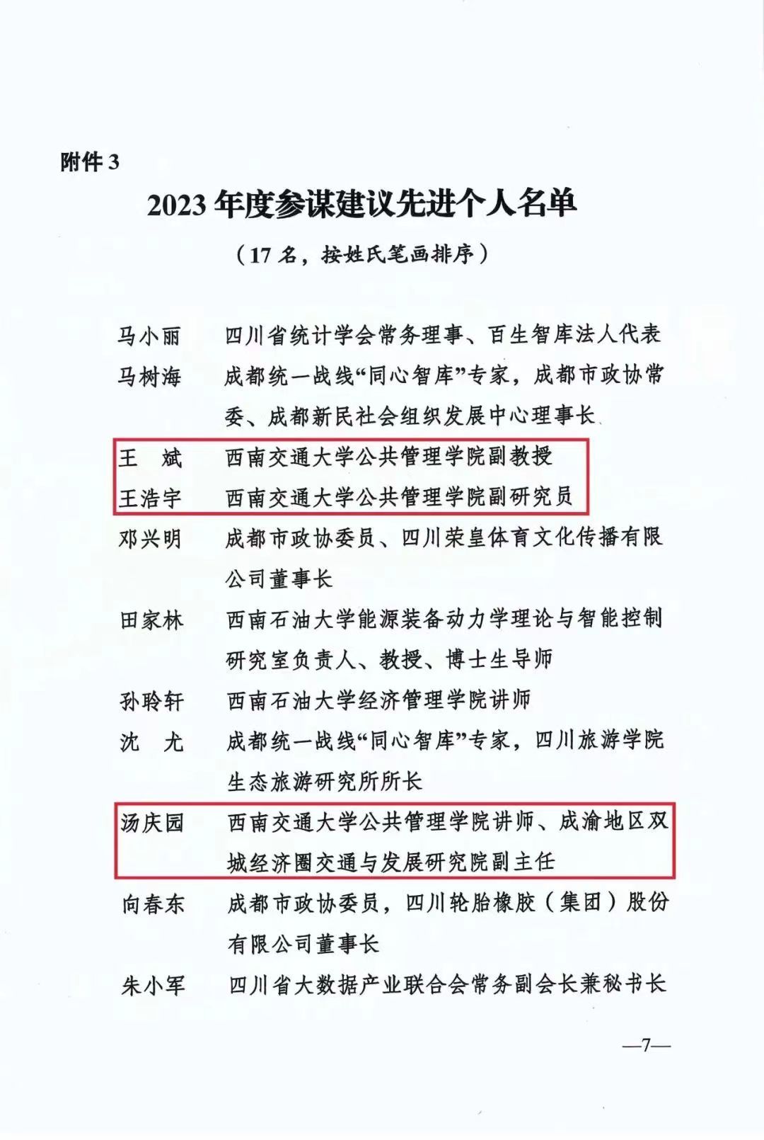 王斌(中共)、汤庆园(民建)、王浩宇(致公党)3位老师获此殊荣。