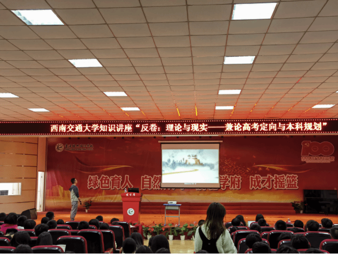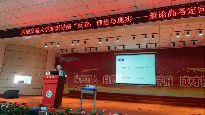 在蓬溪绿然国际学校,王斌老师进行了《反卷:理论与现实——兼论高考定向与本科规划》专题讲座。该校艺体生占比较大,针对这一情况,王斌从“内卷”这一概念的源起出发,结合学生实际情况和喜闻乐见的案例,用“接地气”的语言深入浅出讲解,引发在座同学共鸣。他授以“Fun”与“想象自我”为关键词,鼓励同学们找寻舒展自我的可能性和真正的快乐,学会放大自己的优势,在自己的赛道上跑出最好成绩。在提问环节,薛婧针对同学们有关高考录取、专业设置等问题进行逐一解答,围绕我校的历史沿革、学科特色、办学成果、招生政策等方面为学子们进行详细介绍,欢迎和鼓励广大学子选择优视频