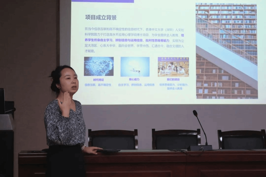 宣讲会开始前,大家观看了港中大(深圳)和人文社科学院宣传片,领略校园文化,感知校园生活。颜雯洁老师首先介绍了港中大(深圳)以及人文社科学院的发展历程和办学条件,从专业(项目)开设、师资力量、书院制育人模式、交流交换项目、升学就业前景和课外实践活动等方面带领大家了解了港中文(深圳)人文社科学院的基本情况。