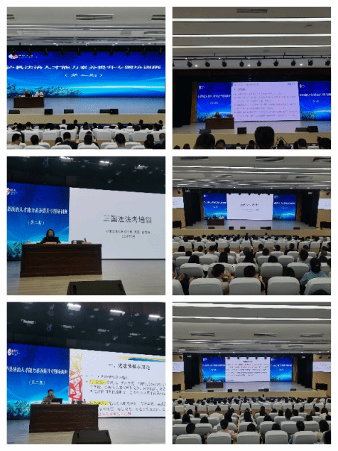 于2024年5月8日至9日组织陈迎新、吴昱、黄亮、杨道现、张敖及2022级法学硕士骆阳前往泸县党校培训中心,为当地公职人员举办了一场为期两天的法律职业资格考试专题辅导讲座。全县各镇(街道)、县级各部门法治业务骨干、法律爱好者共计160余人参加培训。
