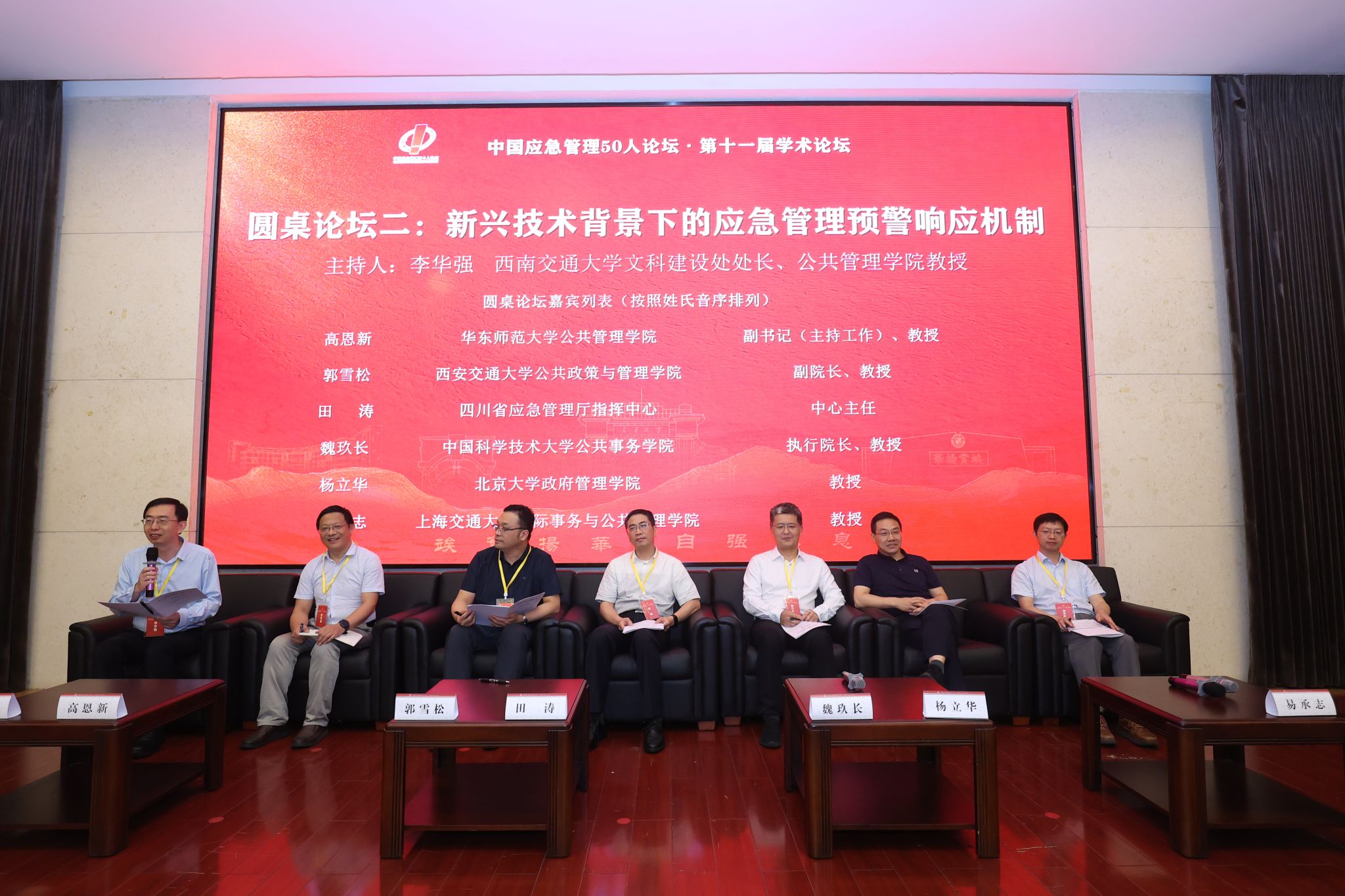 文科建设处处长李华强主持,来自北京大学、复旦大学、上海交通大学、南京大学、中国科学技术大学、西安交通大学、武汉大学、中国人民大学等高校的学者,以及四川省应急管理厅、成都市应急管理局、雅安市应急管理局等相关领域的实践专家围绕“AI 赋能基层应急能力提升”、“新兴技术背景下的应急管理预警响应机制”等主题,展开了系统深入的研讨交流。