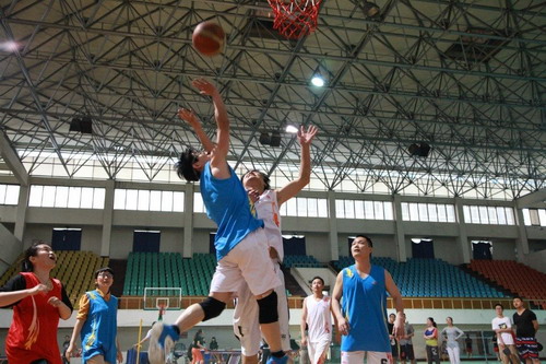友谊赛之后,MPA篮球联赛的第一场正式比赛开战,由2012级MPA成都班对2013级MPA成都班,赛制分为上下半场,各15分钟,共30分钟。比赛一开始,2012级成都MPA班就以迅雷不及掩耳之势投出一个三分球,接着又连晃过人上篮夺下2分,打出了5:0的开局优势。2013级MPA成都班见开局不利,马上调整进攻策略,联防夹攻,很快打出了6:0的小高潮,反超了12级MPA成都班。之后,由于13级MPA成都班连续失误,接连给对方送分,使得比分又变成了7:13,最终导致上半场双方以13:21的比分结束。下半场一开始,2013级MPA成都班就狠追猛赶,但结果并不理想,此时2013级MPA成都班教练叫了一个暂停,换人上场之后表现出了极强的战斗力,打出了5:0的小高峰,但由于时间原因,2013级MPA成都班最终以25:29的总比分惜败,2012级MPA成都班赢得了MPA篮球联赛的第一场比赛。