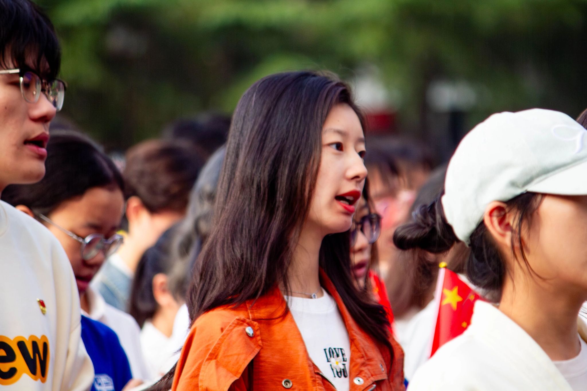 ——手持国旗,队列整齐