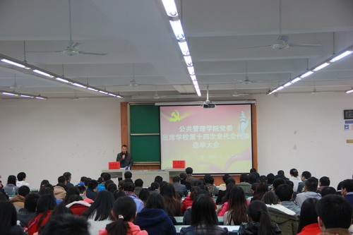 各支部按照2014年11月10日学校党委会议精神和11日学院党委扩大会议的要求,召开了各支部党员大会进行无记名提名酝酿。2014年11月14日,学院党委召开党委扩大会议,根据分配的代表名额、构成要求和代表条件,严格按照民主程序,充分酝酿讨论,根据多数党员的意见,按多于代表名额20%的比例提出代表候选人预备人选名单,并将代表候选人预备人选登记表报十四次党代会大会筹备工作领导小组组织组,经同意后,召开这次全体党员大会进行选举。