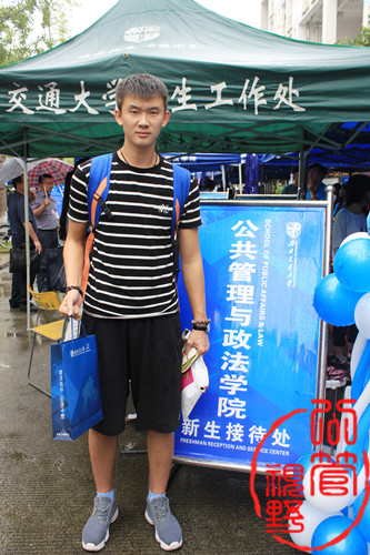 迎来了第一位前来报到的新生――余港,他来自重庆,是一名法学类的新生,父母陪同他来到了成都,但他坚持独自来学校报到,可见其较强的独立意识。在迎新工作人员的帮助下,该新生完成了通知书扫描、学籍信息核对、一卡通领取和新生大礼包与新生纪念册领取等报到流程,并由工作人员带领至寝室。