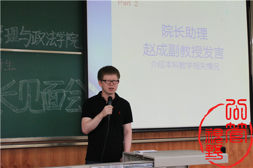紧接着,院长助理赵成副教授上台发言,向新生家长介绍本科相关情况。他介绍了本科课程的四大板块,并针对每一个板块作出说明,使新生家长有个大致的了解。同时,他强调,想要提高学术能力,课堂内容远远不够,学生应该多参加学校科研类活动和创新创业项目等。优视频