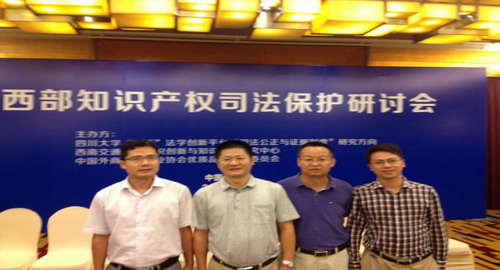 知识创新与知识产权研究中心和中国外商投资企业协会优质品牌保护委员会主办的“西部知识产权司法保护研讨会”,于2015年8月19日在锦江宾馆锦城厅举行。我校知识创新与知识产权研究中心陈家宏教授、徐兴祥、刘峰副教授和杨道现博士参加了会议。会议由四川大学法学院教授万毅主持,参加会议的还有四川大学“985”法学创新平台首席科学家龙宗智教授、四川省高级人民法院原副院长、四川省人民政府参事陈智伦教授、中国外商投资企业协会副会长、优质品牌保护委员会主席陈小东先生,最高人民检察院侦查监督厅知识产权处副处长李薇薇,四川省高级人民法院民三庭副庭长杨丽,四川省人民检察院侦查监督处副处长杨宁,成都市中级人民法院副院长胡建萍等四川市区法院、检察院、公安系统专家,以及西南财经大学、电子科技大学、西南民族大学教授、四川省知识产权中介商会会长、赛诺菲、强生、飞利浦、EPSON、Apple等世界500强的企业法律顾问、律师等60余人。