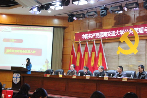 11月26日下午14:30,公共管理与政法学院党员大会在九里校区国际会议厅隆重举行。校党委组织部副部长陈璐出席大会。会议由余小英同志主持。本次大会应到有表决权、选举权的党员216名,实到190名。