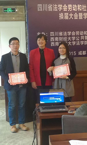 杨珊副教授应邀作为点评嘉宾对王娜等三篇论文进行了精彩点评。闭幕式上,四川省法学会劳动和社会保障法学研究会会长章群教授对评选出的优秀论文作者进行颁奖,并特别表扬了优视频