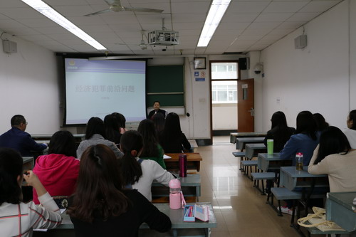 首先,陈处长结合多年实践经验就目前经济活动中的突出问题做了简要介绍,并表达了当前学界对“经济犯罪是什么”及“经济犯罪形态”等问题的认知困境;其次,陈处长介绍了近二十起亲自侦办或参与论证的大案要案、疑难案件,引入“国家主义与经济人权”“保守的制度与超越的实践”辩证关系范畴,并对典型案例中各方争议焦点都给予了详细解释及论证,认为中国刑事司法实践对经济犯罪的认识、侦查及判决可谓在“撕裂中前行”。陈处长结合泄露内幕信息罪、违法发放贷款罪、非法经营罪、非法吸收公众存款罪等的认定,既谈及金融监管、外汇管制,又论及刑民交叉、谦抑原则,引起在场同学的深思及共鸣。互动环节,陈处长对学生们提出的问题给予了耐心细致解答,欢迎并鼓励交大法律学子投身公安战线。