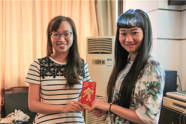 班会的最后,辅导员易恬老师对我们此次班会进行了总结并对大家日后的学习生活寄予了厚望,接着生活委员张佳莹同学代表全班同学将同学们此次对交大校庆的捐款交到了易恬老师的手中,钱虽然不多,但满载着同学们满满的心意。