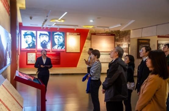 11月2日下午,学院教师队伍怀着崇敬之心来到安顺场中国工农红军强渡大渡河遗址追寻先辈足迹,感悟精神力量。纪念馆展厅以弘扬红军精神为主题,分为长征、大渡河战役、红军长征过安雅、翼王悲歌、历史评述等五个部分。纪念馆通过图片、文字和文物等资料讲述了1935年5月25日强渡大渡河的壮烈故事。