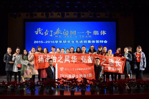 这就是2015级硕士政法1班,一个团结友爱、努力奋斗的集体,一个追求着自由、民主、平等的集体,一个在公平与正义的探讨中砥砺前行的集体,一个努力成为优秀人群的“先进”集体。