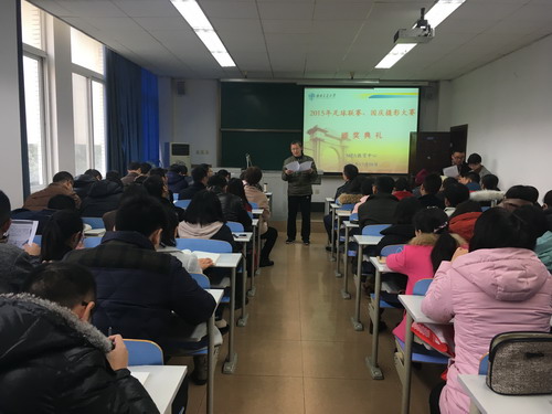 典礼首先由王永杰书记致辞,王书记在致辞中表示师生足球联赛的开展不仅丰富了同学们的课余生活,也加强了同学间师生间的交流,曾强了学生与学院、学校之间的归属感。而2015年国庆摄影大赛更是以世界反法西斯战争胜利70周年、同时也是以中国人民抗日战争胜利70周年为契机,以“国庆日——国与家”为主题,激发了广大同学的爱国主义热情,增强了民族自豪感和责任感,很有现实意义。