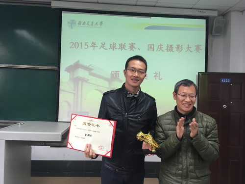 公共管理与政法学院在逸夫馆4222教室举行2015年MPA师生足球联赛及国庆摄影大赛颁奖典礼,学院党委书记王永杰、学院办公室主任王崇杰、公共管理系系主任刘桂花、 MPA教育中心办公室主任李明及部分MPA学员出席了颁奖典礼。