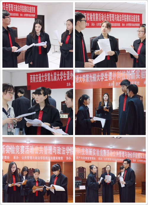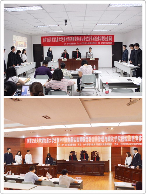 第九届大学生课外科技创新实验竞赛活动,公共管理与政法学院模拟法庭竞赛于X5403模拟法庭实验室顺利开幕。