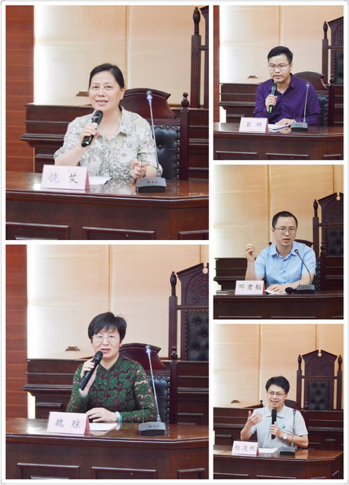 下午四点半整,A、B两组的参赛队的模拟庭审都已全部展示完毕。六位专家评委先后公开评分心证,并对本组参赛队伍的庭审表现进行点评。民事诉讼法方面的专家吕辉老师从书状和程序两个方面对参赛队表现出来的纰漏进行了详尽分析和指导,并强调了法言法语的运用的重要性。杨道现老师主要强调了文书的规范性和完整性并重点关注了庭审质证和辩论环节。邓君韬老师则希望大家注意案例证据材料里的细节问题,结合相关法律法规对争议焦点进行更深更细的挖掘。魏琼老师首先便给了大家一个耳目一新的公式:良好的法庭表现=法律知识+生活经验+尽心尽力。这一点,想必今天参赛的选手都深有感触。魏老师更强调的是希望大家把握好案例材料中真正的核心关键点。最后进行评价的是饶艾老师,饶老师高度赞扬了同学们参赛热情之高昂,肯定了模拟法庭竞赛活动组织的意义,并且鼓励同学们无论最后成绩如何,排名如何,同学们在实践方面都得到了很好的锻炼,在这个意义上参与此次竞赛的同学们都是成功的。最后,饶老师强调判决书是整个庭审结束后的一个总括和“成果”,同学们应该注意判决书的规范性、法律性、准确性和说理性。专家评委们精彩的点评也让在座的同学们受益匪浅。