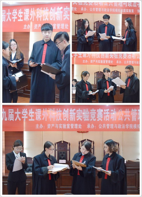 大学生课外创新实验竞赛活动的宗旨,不断积累和总结模拟法庭活动的成功经验,将模拟法庭竞赛这一品牌赛事办的更好。