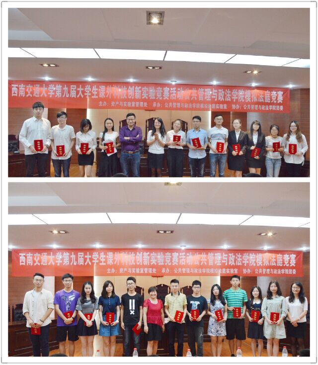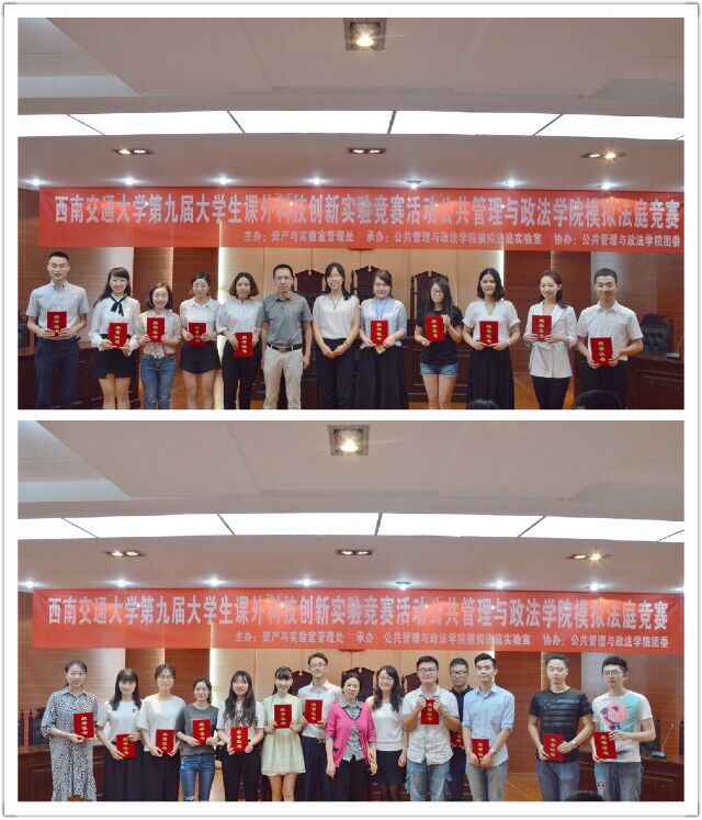 赛程的最后一项是颁奖典礼,由各位专家评委为获奖团队颁奖,并合影留念。至此,模拟法庭竞赛活动圆满结束。模拟法竞赛为同学们提供了一个展示自我、锻炼自我、提升自我的舞台,更为同学们打造了一个交流思想、明辨是非、学以致用的广阔平台。公共管理与政法学院法学系、模拟法庭实验室也必将贯彻执行优视频