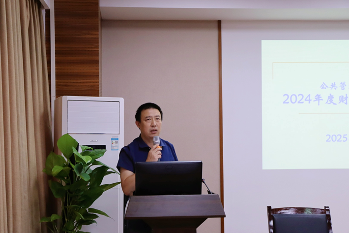 院长李华强同志作学院2024年度工作报告,报告系统回顾了过去一年学院在党建及思想政治工作、师资队伍建设、学科专业建设、人才培养、科学研究、学生工作、管理服务等方面取得的显著成效。他指出,学院将以“十五五”规划为引领,分“三步走”提升学院整体实力,持续优化人才引进,全力推进公共管理博士点申建工作。他希望能够凝聚全院上下的智慧与力量,心无旁骛地共同开创学院事业的新篇章。