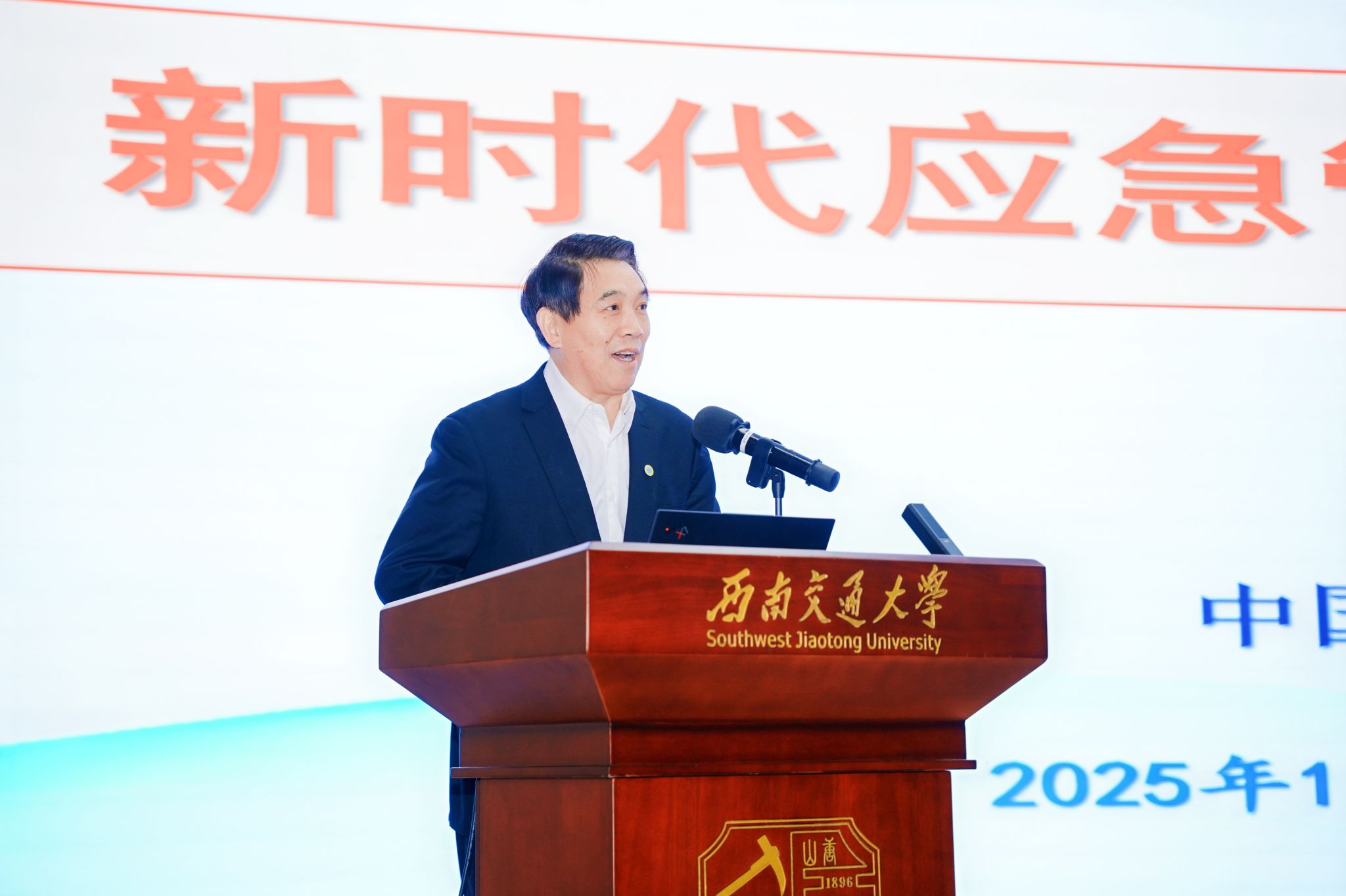 院长李华强教授主持。中国灾害防御协会会长、应急管理部原副部长郑国光以“新时代应急管理的挑战及对策”为题,从当前我国应急管理面临的多重风险挑战切入,系统阐述了推进应急管理体系和能力现代化的实施路径。他指出,必须坚持统筹发展和安全,构建大安全大应急框架:一是强化理论武装,坚持党对应急管理工作的全面领导;二是健全风险防范化解机制,强化源头管控和监测预警;三是加强应急救援队伍建设,打造专常兼备的现代化救援力量;四是强化科技与人才支撑,深入实施智慧应急战略;五是完善法制保障体系,提升应急管理法治化水平;六是夯实基层基础,实施应急能力提升计划;七是深化国际合作,加强与国际和区域组织合作。这些举措共同构筑了应对新时代应急与风险挑战的系统性解决方案。