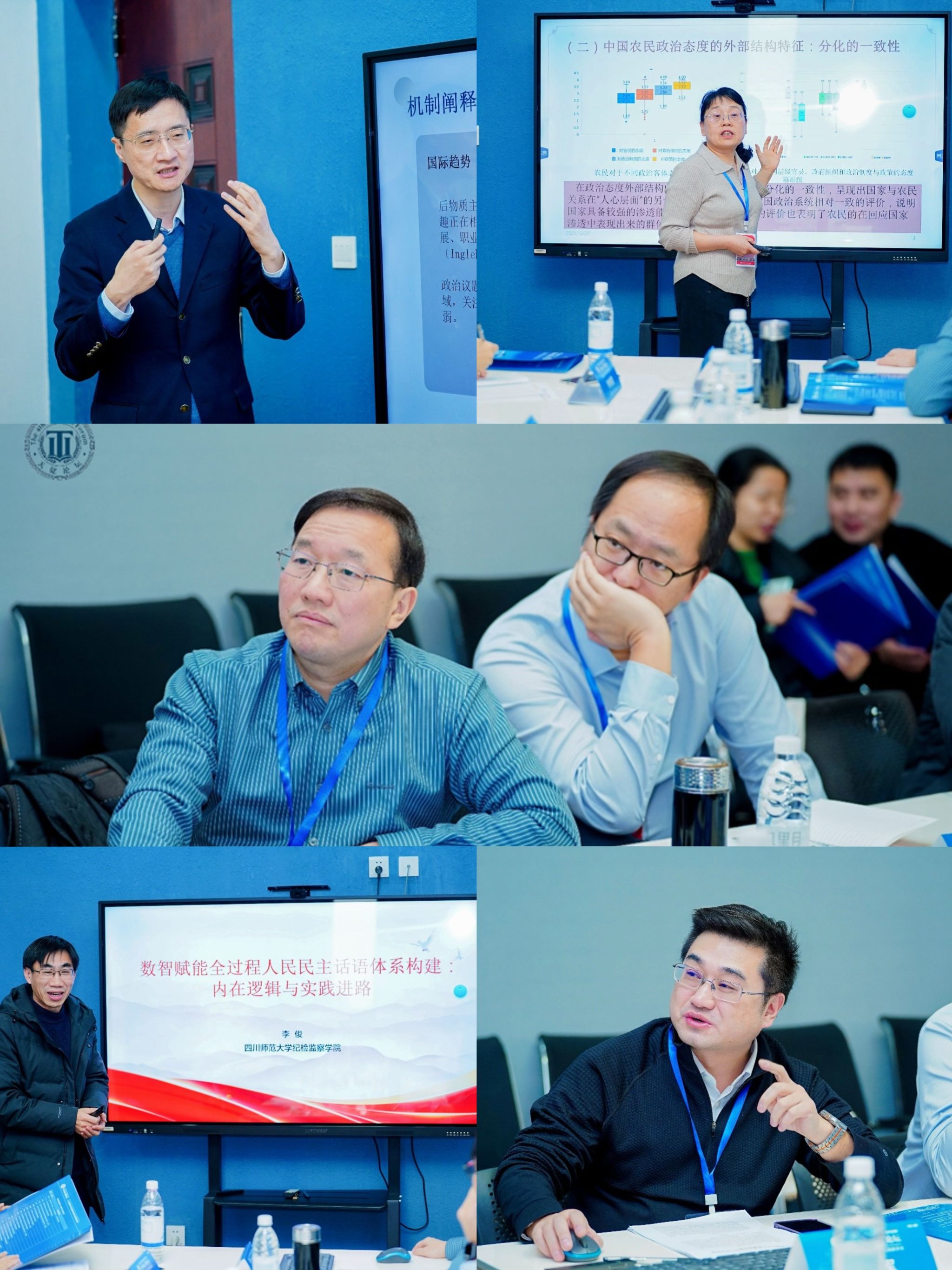 平行论坛二由西华师范大学政治与行政学院院长张思军教授主持,厦门大学李艳霞教授、西安交通大学王洋教授担任评议人。山西大学李蓉蓉教授通过晋粤两省混合研究,构建农民政治态度“立体评价体系”,提出“点翼型样态”理论,揭示农民宏观价值认同趋同与内外部评价非均衡的特征。中国人民大学韩冬临教授利用HAPC模型分析发现,数字媒体对年长世代政治兴趣提升作用更显著,年轻世代则呈下降趋势,直接挑战了数字原住民政治兴趣更高的“数字原住民敏感假说”。四川师范大学李俊教授通过构建“主体-内容-形式-场域”四维模型,阐释了数智赋能全过程人民民主话语体系的内在逻辑,提出需防范算法操纵等风险。西南科技大学雷磊教授强调在主流意识形态融入算法推荐的必要性,建议通过优化内容设定、完善制度保障、加强主体培育实现技术向善与价值引领。北京大学周俣勋老师构建动态风险治理模型,指出突发事件防控需重视经济效应的阶段依赖性与舆情内生反馈。优视频