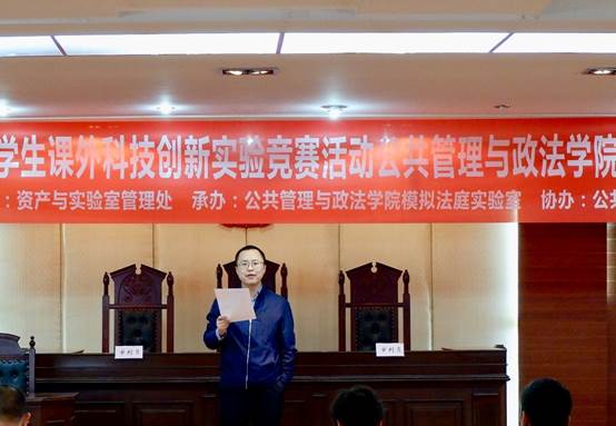 公共管理与政法学院院长助理邓君韬副教授于百忙之中抽身莅临初赛现场指导竞赛工作。法学系主任魏琼副教授、朱奎彬副教授、颜诗树副教授、李永泉副教授和邓翠薇老师作为校内专家评委,四川英济律师事务所副主任吴爱民律师作为校外专家评委,他们共同担任初赛A、B两组的评审专家。