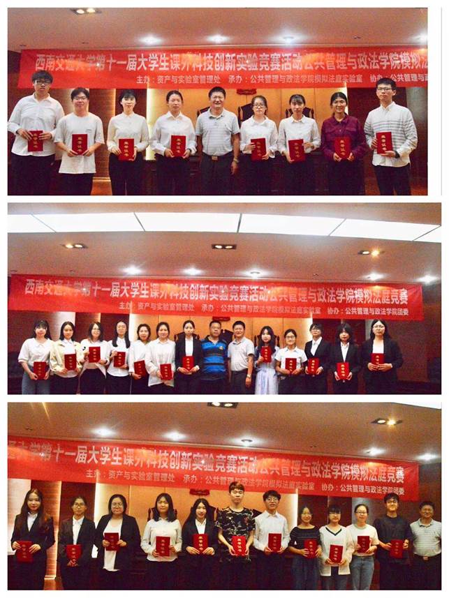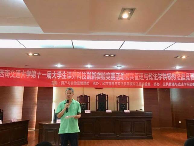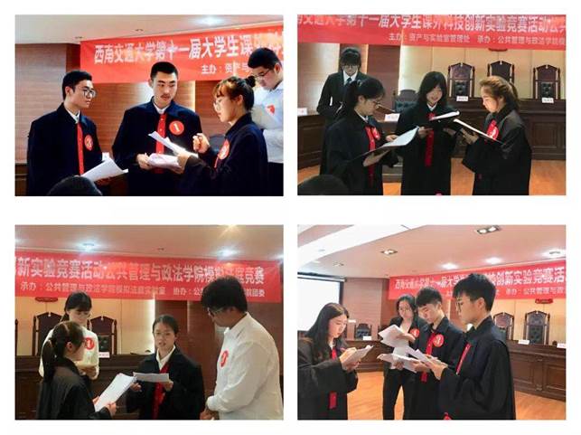 第十一届大学生课外科技创新实验竞赛活动之2019年模拟法庭竞赛决赛在犀浦校区5403模拟法庭实验室成功举行,模拟法庭竞赛活动胜利落下帷幕。