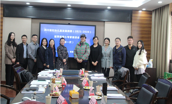 副教授彭峰、四川师范大学副研究员唐文焱、西南财经大学法学院副教授何霞等8位专家共聚一堂,就妇女儿童纲要编制工作发表意见建议。