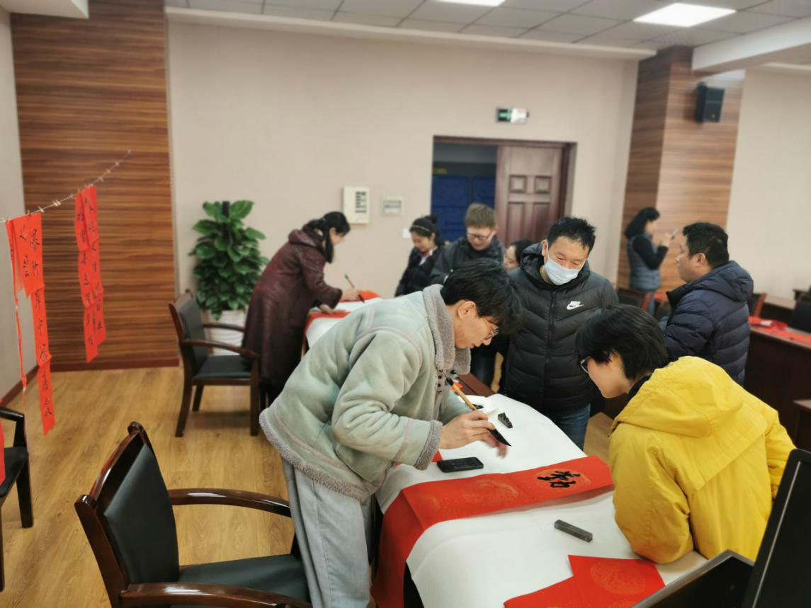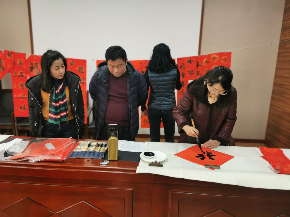 疫情防控期间,为响应国家和省市关于留在当地过节、过年的号召,学院党政工团于2021年1月21日下午邀请了书画协会的老师和同学在九里校区01216室为学院教职工写“福”字、送新春对联。