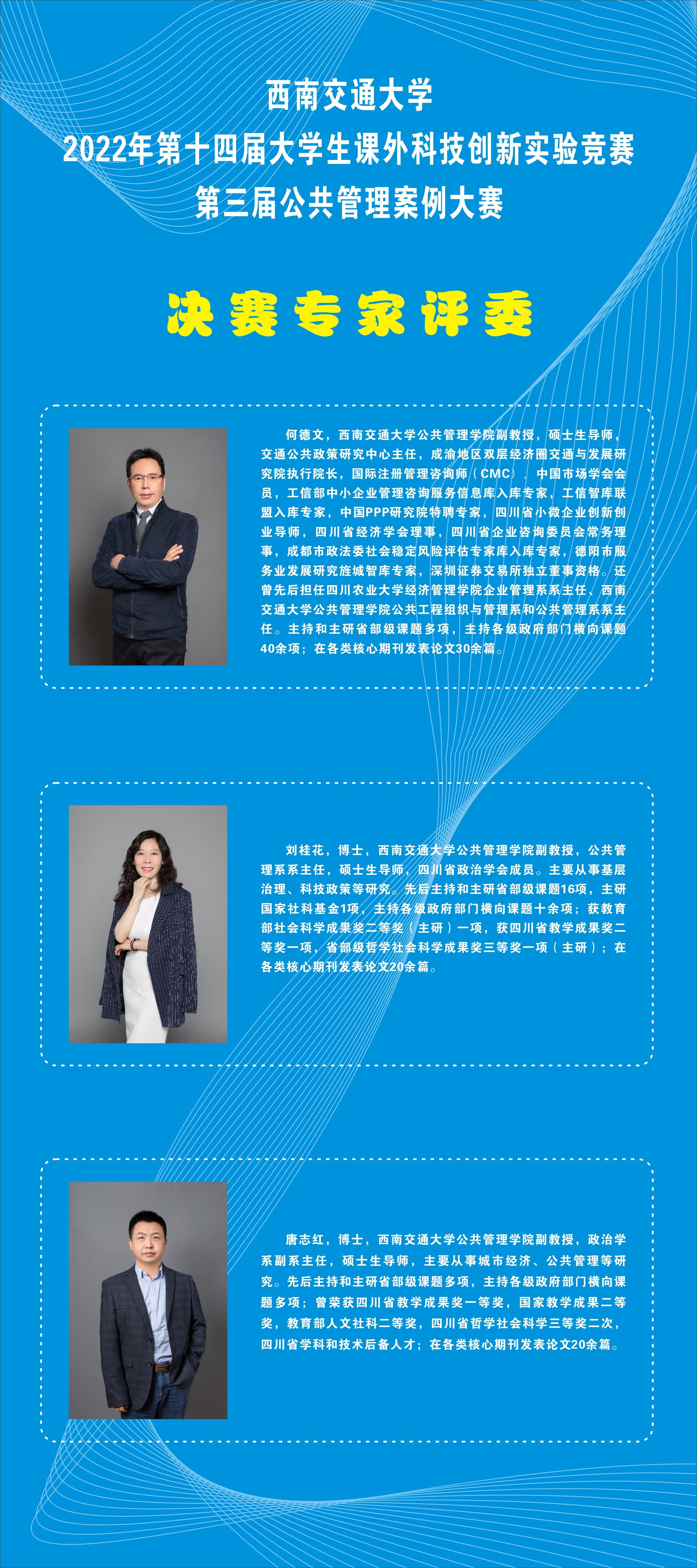 在复赛评选中,在导师回避、专业匹配的原则下,经过6名专家评审,两个分赛场组分别有一支参赛团队晋级第三届公共管理案例大赛决赛,现对决赛赛事安排如下: