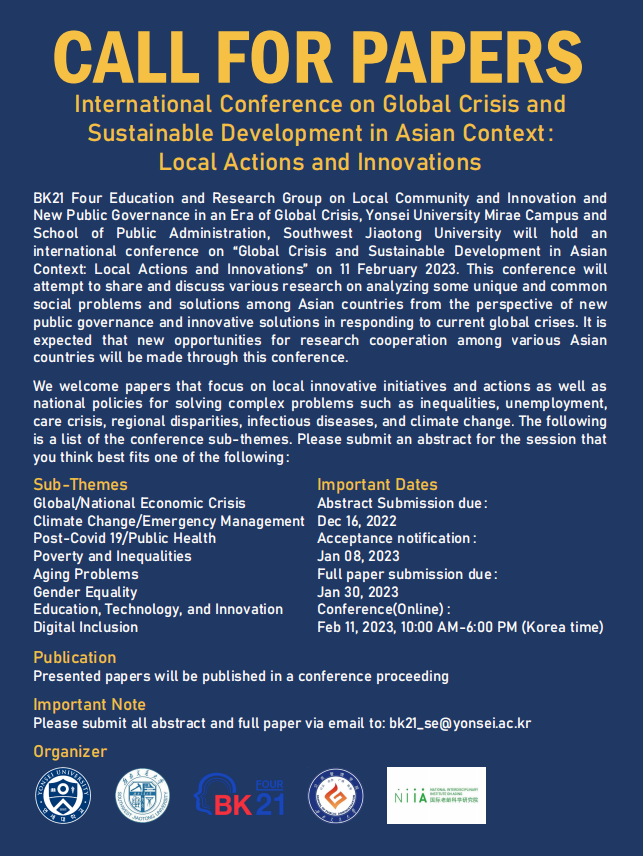 韩国国家科研计划BK21 FOUR“地方政府、创新与全球危机时代下新公共治理教育”项目组、延世大学政商学院和优视频