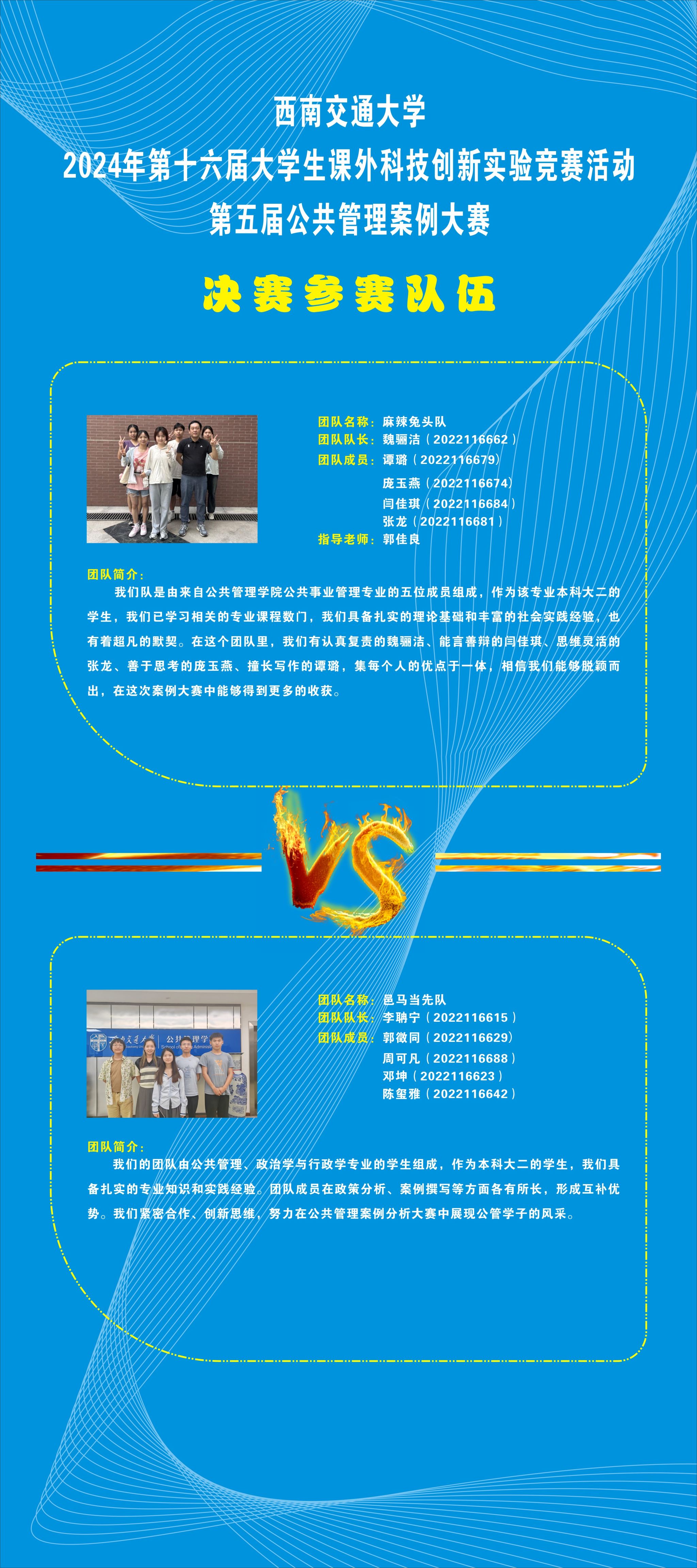 在复赛评选中,在导师回避、专业匹配的原则下,经过6名专家评审,两个分赛场组分别有一支参赛团队晋级第五届公共管理案例大赛决赛,现对决赛赛事安排如下:
