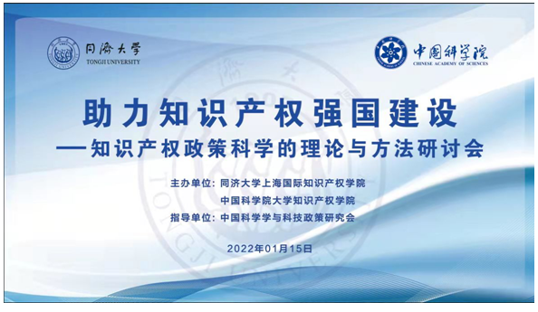 为深入贯彻落实《知识产权强国建设纲要(2021-2035)》有关精神,有力支撑知识产权强国建设,引领高质量发展,2022年1月15日,由同济大学与中国科学院大学共同主办、中国科学学与科技政策研究会支持的“助力知识产权强国建设——知识产权政策科学的理论与方法研讨会”在同济大学组织召开。优视频