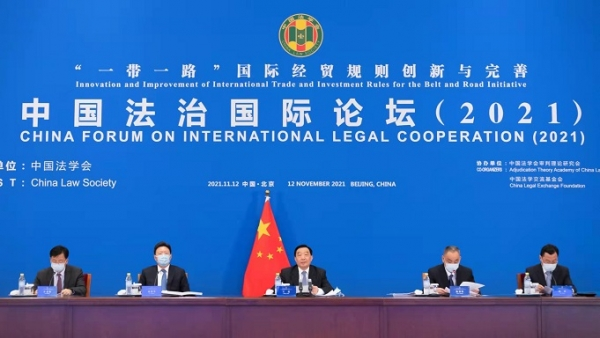 2021年11月12日在京召开的中国法治国际论坛(2021)上,中共中央政治局委员、全国人大常委会副委员长、中国法学会会长王晨出席并发表主旨演讲。在论坛上,各国代表一致认为,高质量共建“一带一路”,必须维护和建设公正合理、开放透明、创新完善的国际经贸规则。