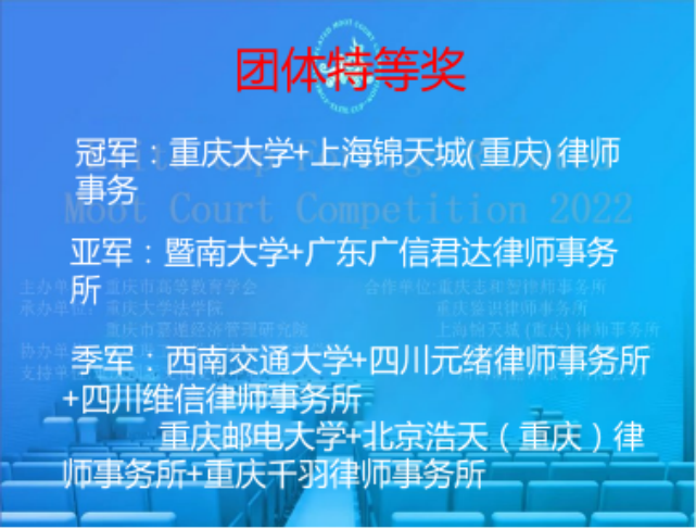 2022年12月18日,2022年第二届“领军杯”涉外模拟法庭全英辩论赛在重庆大学落下帷幕,经过激烈角逐,优视频