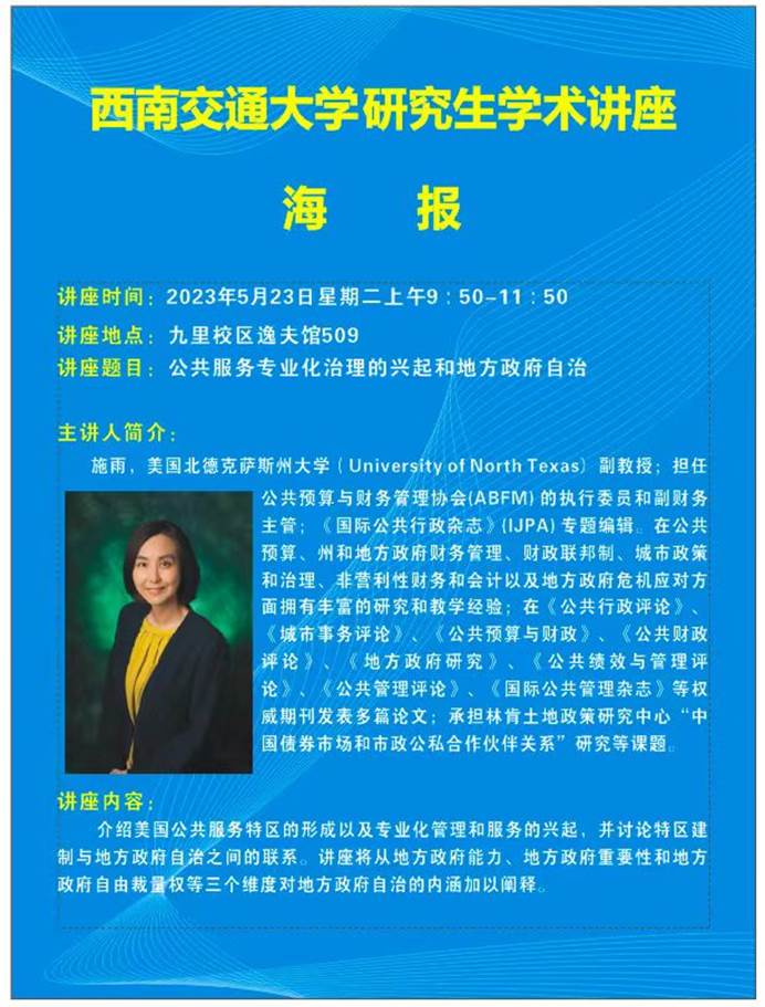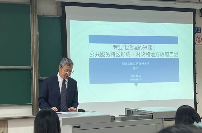 师生带来题为“专业化治理的兴起:公共服务特区的形成、财政和地方政府自治”的学术报告。报告在我校九里校区逸夫馆509教室举行,由优视频