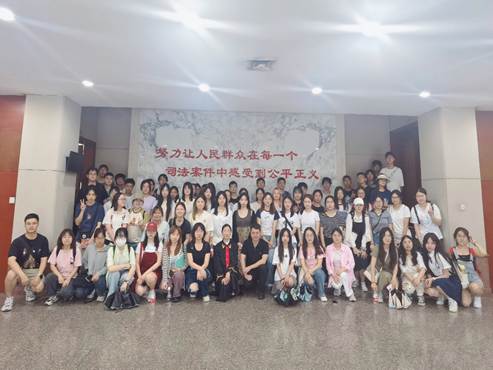 师生来到眉山市东坡区人民法院,现场旁听庭审活动。整个庭审过程程序严谨、辩法释理,给大家上了一堂生动的法学实践课。通过零距离接受法治教育,沉浸式体验审判文化,同学们切实感受到了法律威严和司法公正,亲身体验到真实的司法程序。