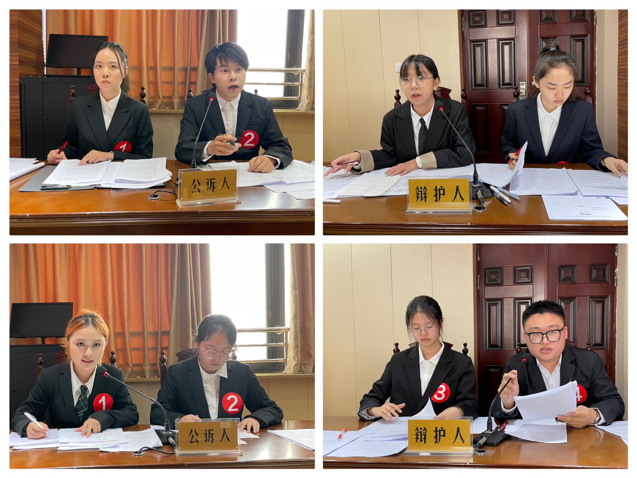 在今年的模拟法庭竞赛中,比赛报名依旧热烈,学生参与度高、参赛范围广。经过初赛的司法文书评审和复赛的激烈角逐,魏琼老师指导的4号杜星瑶团队和陈迎新老师指导的5号高博团队杀出重围,脱颖而出,晋级决赛。