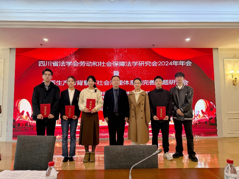 法学硕士研究生张腾宇与法律硕士研究生陈江涛完成的《灵活用工从业者职业伤害保障制度研究》荣获优秀论文评选三等奖;法学硕士研究生刘星宇与法律硕士研究生蒲淳完成的《新质生产力视域下工会在劳动保障中的功能优化》荣获优秀奖。