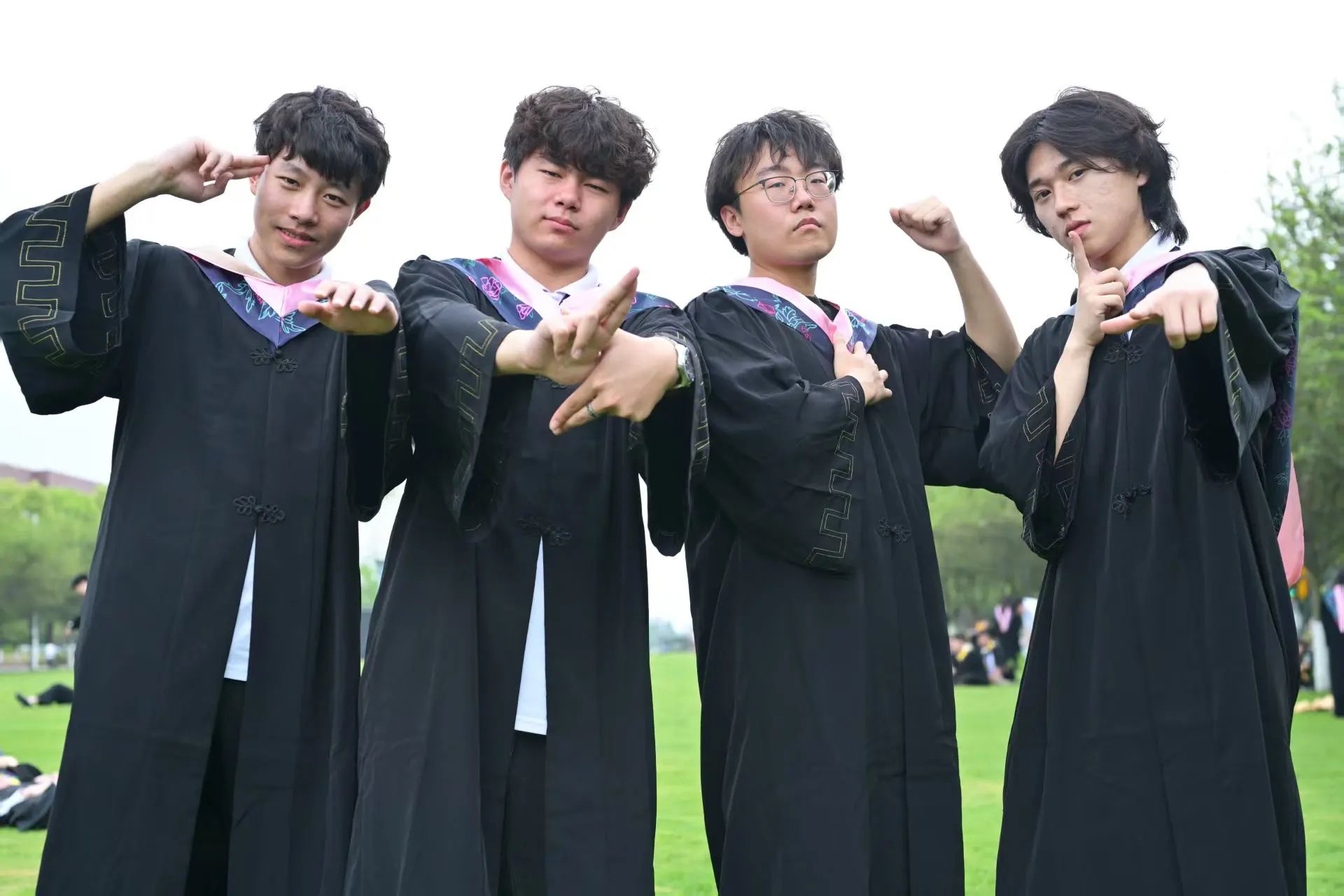 四月的风轻柔地掠过校园,树影婆娑,阳光明亮。穿上学士服的那一刻,我们才真正意识到,分别已悄然临近。草地上、林荫下、教学楼前——我们将四年的故事浓缩进一张张合影中。今天,我们站在人生的岔路口,轻声说出那句“再见”。
