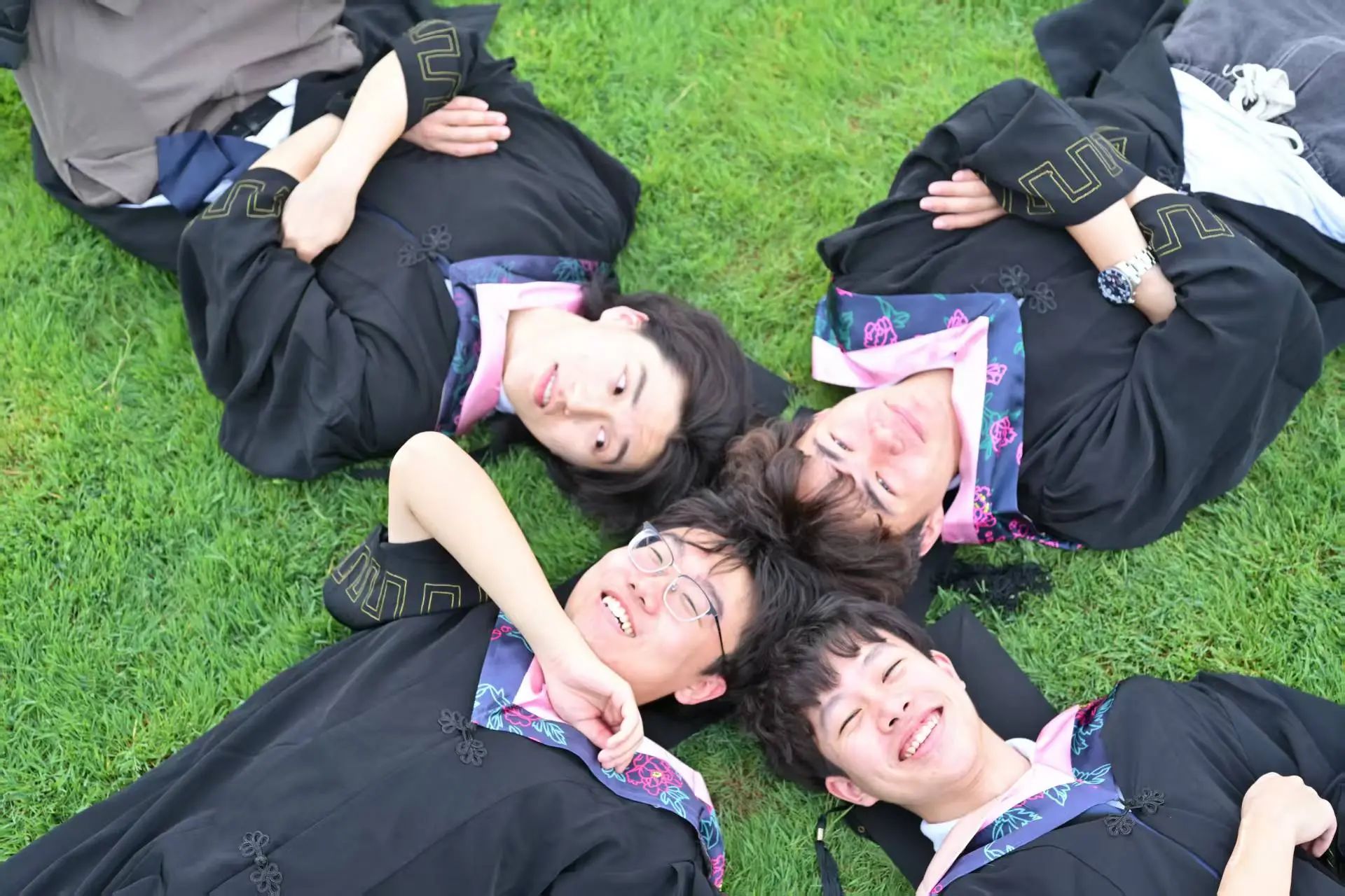 草地上的爱心手势、随意坐下的嬉笑、那一组组的合影中张扬的笑容……都是在用自己的方式说着:“我真的很开心,也真的很舍不得。”