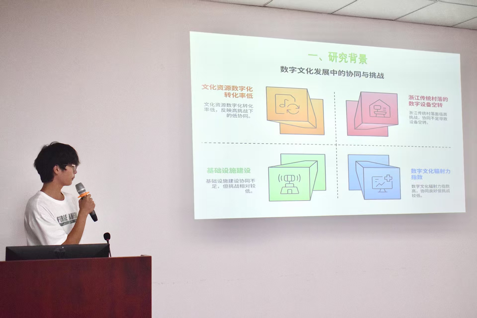 基于浙江传统村落数字设备空转背景,该团队着重关注文化数字化助力乡村振兴,剖析数字文化发展挑战,如文化资源数字化转化率低等问题。此研究采用PPS抽样法选样本,运用混合研究法,整合量化、质性和空间数据,构建三维分析框架。项目团队借助多种模型深入分析,最终揭示了数字文化要素分布特征 后续将细化振兴路径,积极提出政策建议,助力乡村文化数字化发展。