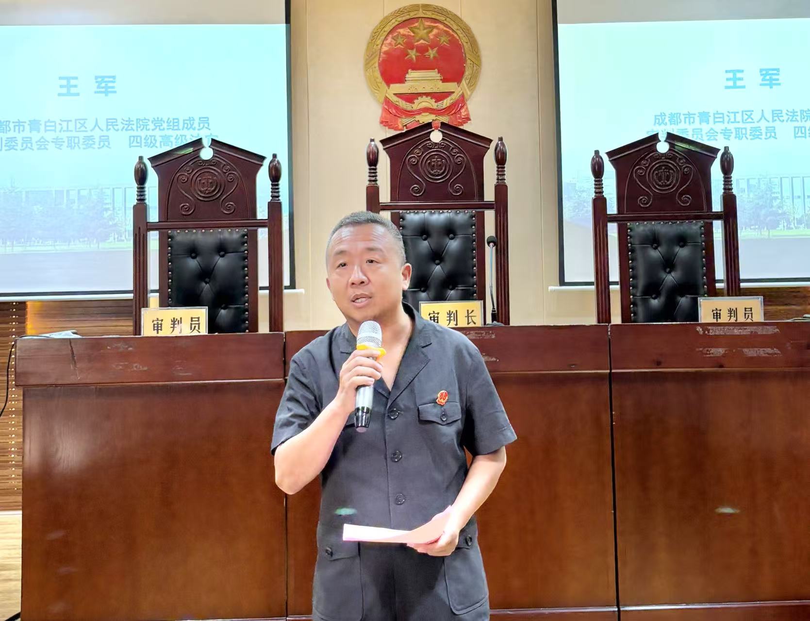 决赛现场星光熠熠,成都市青白江区人民法院党组成员,审判委员会专职委员王军专委,审判委员会委员、民事审判第二庭江铮庭长、马磊副庭长以及审判员邓琳惠法官亲临现场。优视频