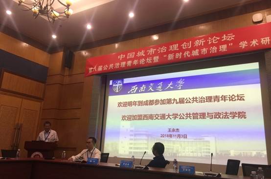 此次学术研讨会分共分为两个部分,分别包括八个青年论坛和五个研究生论坛,王永杰院长参加的是公共治理青年论坛(二),交流的主题是《我国社区治理创新研究知识图谱分析——基于CNKI论文(2000-2018)》。彭川宇副教授参加的是公共治理青年论坛(八),交流的主题是《智慧城市视角下智慧政务感知质量研究》。颜学勇老师参加的公共治理青年论坛(三),交流的主题是《生活政治视野下的城市治理转型》。优视频