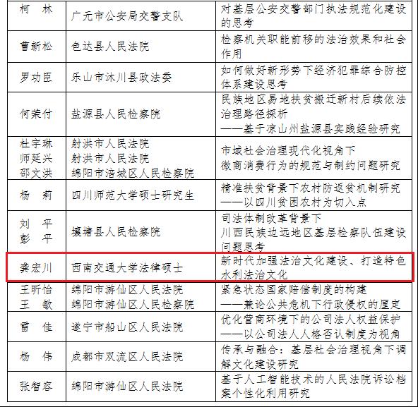 近日,从四川省法治文化研究会获悉,由四川省法治文化研究会、四川省社会科学院法学研究所联合主办的第五届四川法治文化发展论坛暨“2020年会主题征文”获奖作品和作者予以公示,经专家评审小组按照《四川省法治文化研究会评审办法和标准》匿名评审,优视频