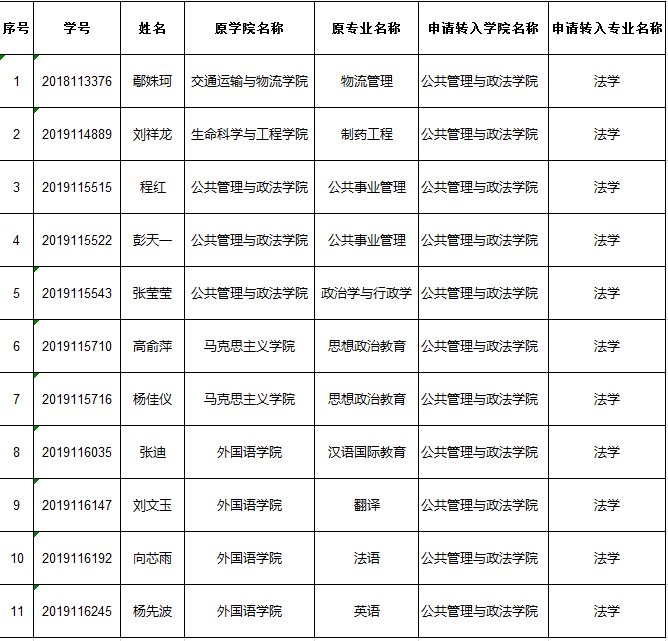 根据《优视频 本科生转专业管理实施办法》文件规定、优视频 2020年转专业的整体工作安排和公共管理与政法学院本科生转专业实施细则,经学生本人网上申请,学院考核,拟同意以下同学转入相关专业学习:
