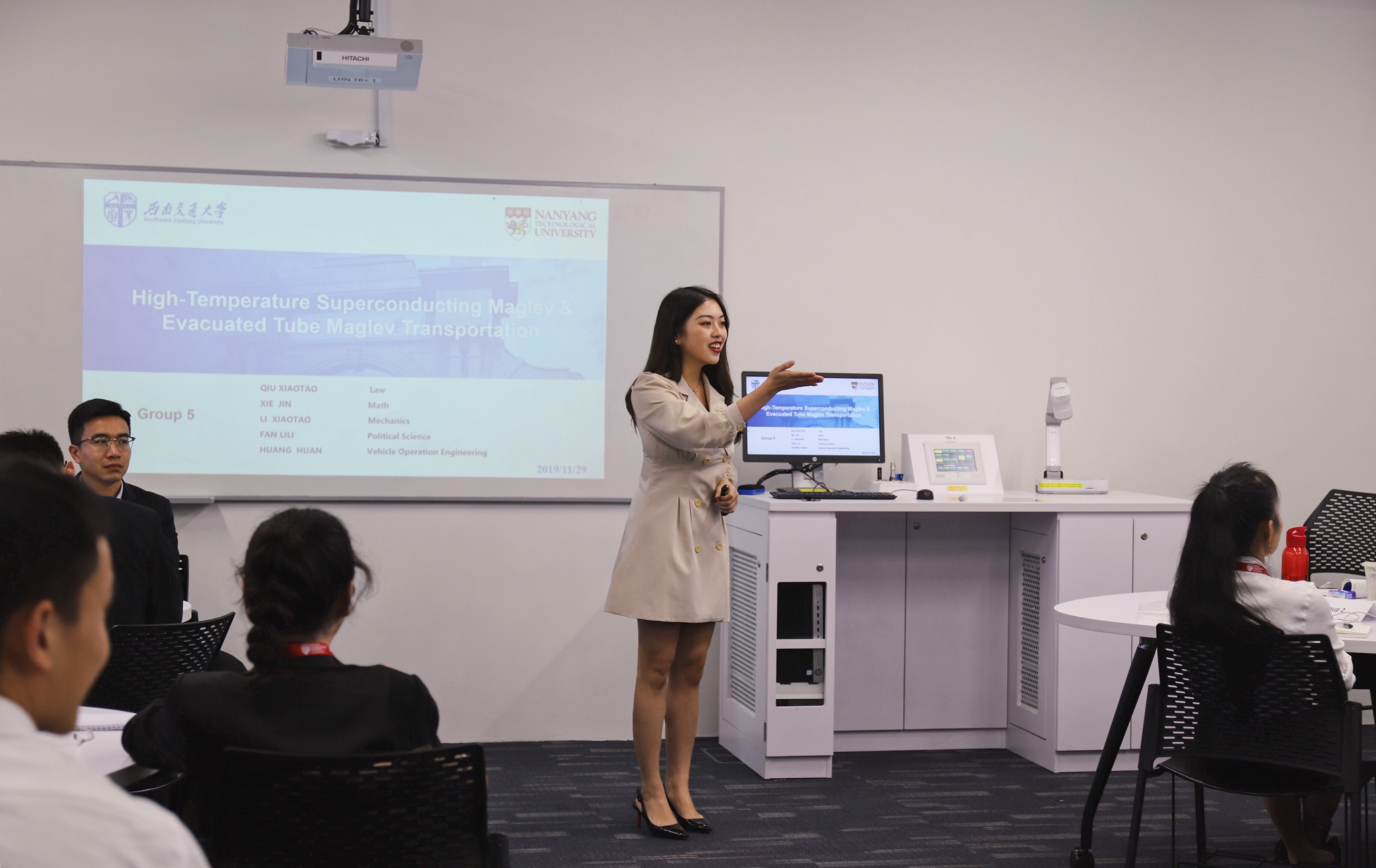 此次课程学习以小组为单位,来自不同专业的小组成员们结合各自学科优势与发展需求,就每日课程后的学术观点进行讨论和整合,并选取某一个课题,进行小组展示。此次小组展示中,邱潇淘作为所在小组的课题展示代表,就“高温超导磁悬浮技术与真空管道磁悬浮技术”的研究现状与预期运用进行了分析论述,得到Robert Tiong教授的高度肯定,并获得此次课题展示的最佳展示个人(Best Speaker)。